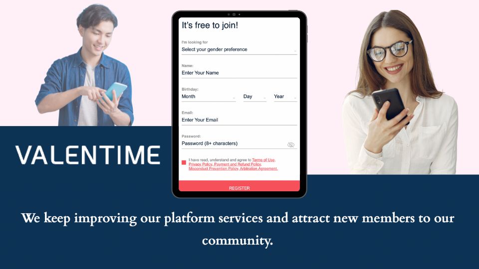 Joining Valentime means stepping into a safe and lively space where online connections are possible. Here’s what you can look forward to: